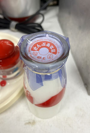 | 道中で購入した関牛乳の新型ミニパックと紙栓ビン製品 | |