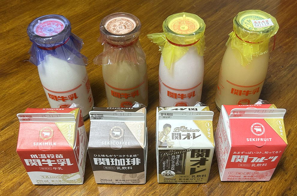 | 関牛乳からミニパックが登場! 郡上八幡へのミニトリップでは往路に東海北陸自動車道の長良川SAで関牛乳のビン製品4種類(牛乳、コーヒー、フルーツ、ビタヨーグル)、復路に道の駅 美並、道の駅 美濃にわか茶屋に寄って、直方体スタイルからストローレスのミニパック仕様に変更となった関牛乳、関珈琲、関オ・レ、関フルーツ(残念ながらビタヨーグルのミニパックは見当たらず)を購入しました。 最近は学校給食にストローレスの風潮が強まり、給食の牛乳を納入しているメーカーがミニパックへ変更しているケースが見受けられます。この関牛乳も200mlサイズはこれまで直方体スタイルでしたが、数カ月前からこのミニパックに変更となったようで、実物は見れませんでしたが、ビタヨーグルもミニパック仕様のようです。関東の方ならJR秋葉原駅のミルクスタンド横にある自販機でビタヨーグルも含め全品5種類コンプで買えるようです。 あと、関牛乳ですが、以前レポートした本社工場での直売は2025年7月末をもって終了となり、本社の事務所に行っても買えないのでご注意ください。そうなると事務所のお姉さんに「未使用キャップください!」とは言えなくなりました・・・ |