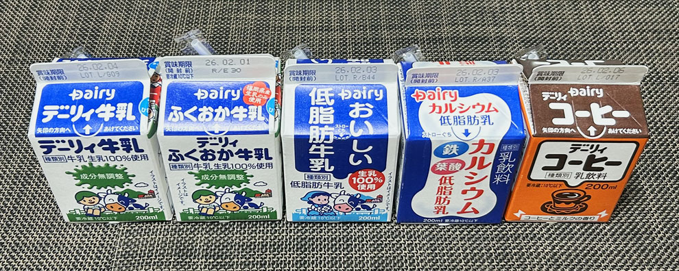 | 南日本酪農協同の通販で購入できたミニパック5種類 | |